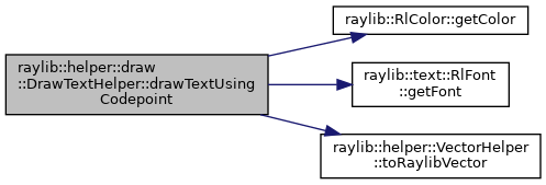 | static void | drawTextUsingCodepoint (const raylib::text::RlFont &font, const int &codepoint, const Vector2f &position, float fontSize, const RlColor &tint) |